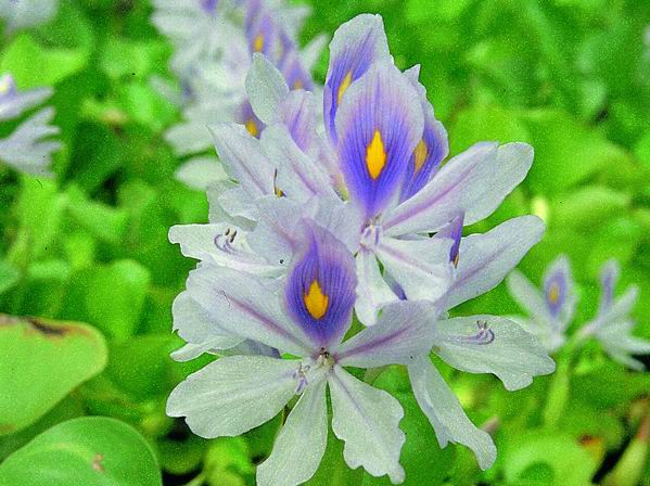 Water hyacinths are sold as permanently flowering swimmers. These tropical plants, however, only flower under permanent sunlight in shallow mud basins 20cm deep. Only few ponds are like this. |