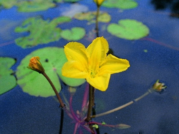 Reality: Ponds with clear water are so low in nutrients that floating plants can hardly survive in them. This fringed water-lily is planted on the ground like other waterlilies and it gets its fertiliser there. |