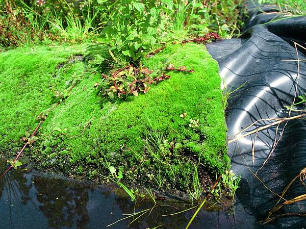 If the shore is higher than 15-20cm above the water level the capillary effect may be insufficient to transport water to the top on hot days. You can lay a strip of Fleece900 underneath to solve this. Usually this problem only exists in the initial growing phase. |