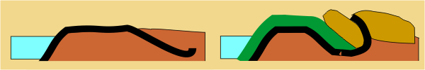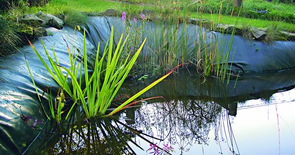 In many cases the liner was pulled over the bank and dug in on the outside. Normally enough liner is over to straighten up the end and, for example, pin it between two rows of stones. |