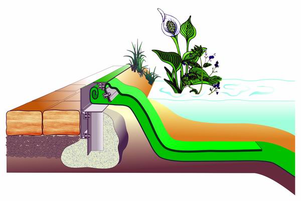 Fastening on the shore prevents the shore mat from sliding into the pond. On the other hand no connection to the surrounding area should exist to prevent water from being siphoned out of the pond.