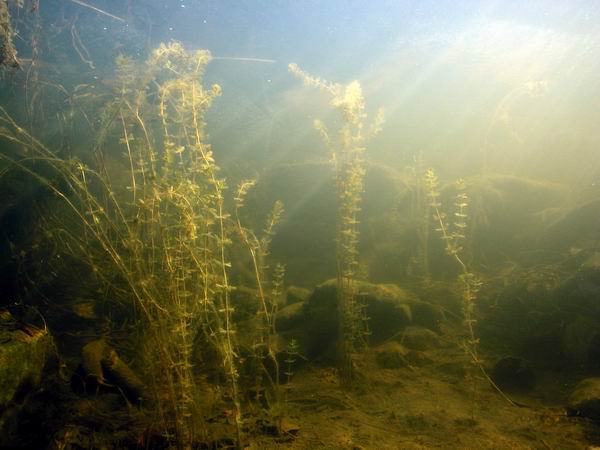 Fish and/or bathers disturb the mud - the nutrients it contains aid the algae. |