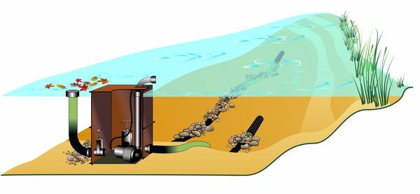 Others install a pump in the water, even though it is illegal for many ponds, and fish, such as sturgeon, don't tolerate this very well. When the pump silts up it has to be extracted from the water, tubes and all, which can damage plants and decoration.