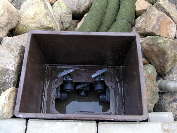 These wells were developed by NaturaGart. We supply them standard with 3 gate valves and plugs for two additional gate valves. This means that they can suction from 5 separate areas. |