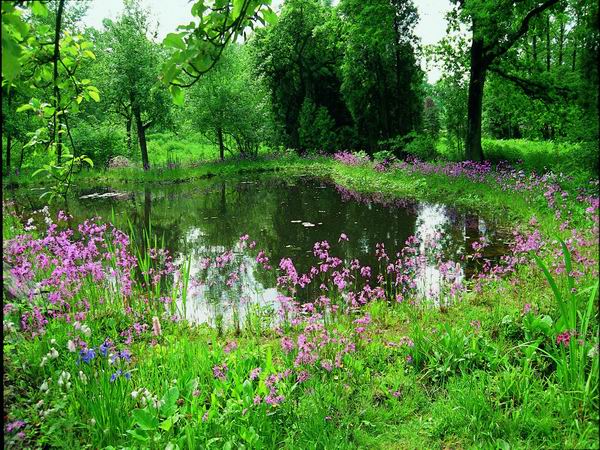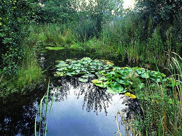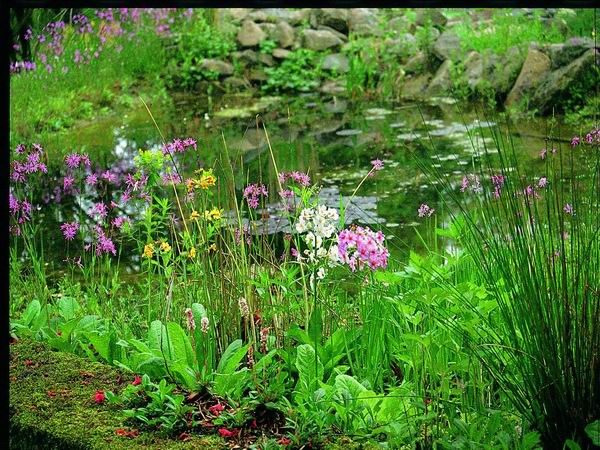 This is really a small lake: Large surface area of water, extended area of reed on the shore, a belt of swimming plants wit water lilies and other species, hidden bays, projecting sand banks - this pond turns your garden into a park.