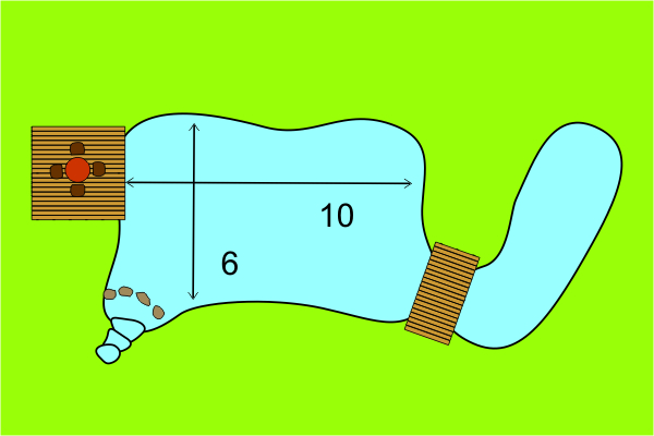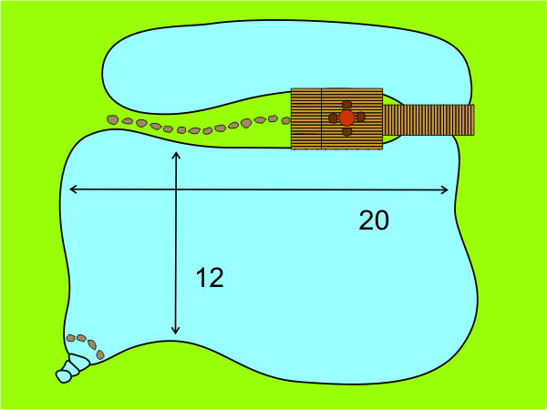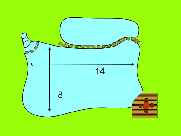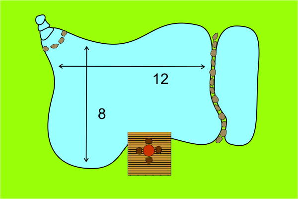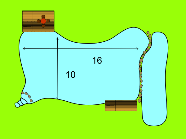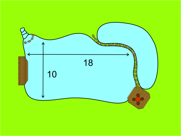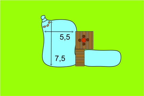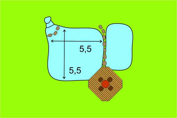 This is he smallest pond with a more or less stable biological equilibrium. With about 30m² of liner you get approximately 8m² of water surface and 70cm depth.