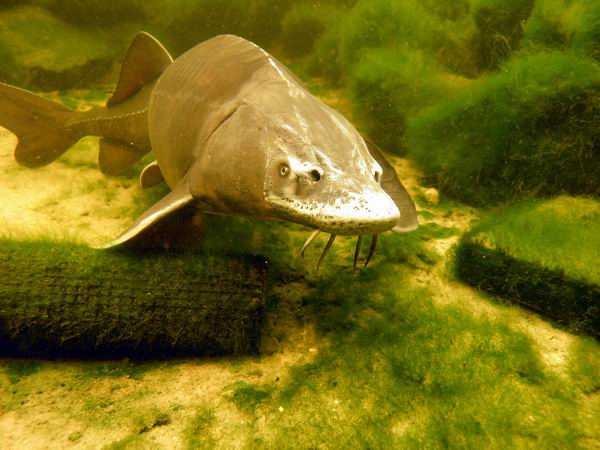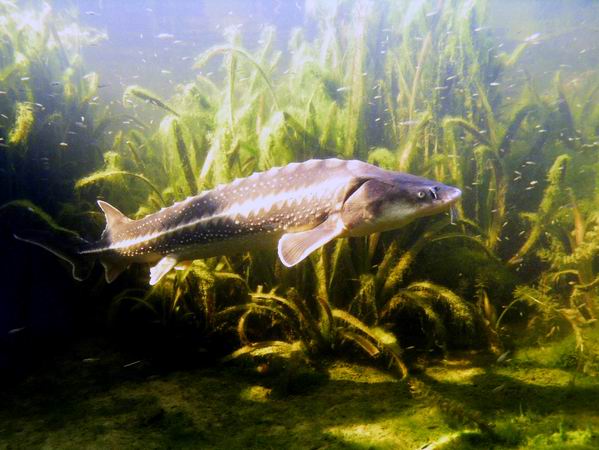 Even though the sturgeons are fed more than 10 kilos of feed per week the sandy ground is clean. Plants also bind nutrients. |
